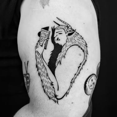 Bengal crée des tatouages illustratif en blackwork, entre abstraction figurative et surréalisme graphique.