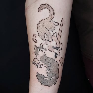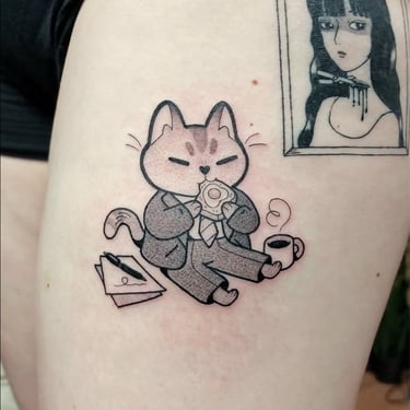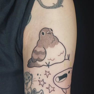Fulifulitattoo tatoue un univers cartoon et illustratif, à la fois mignon et décalé.