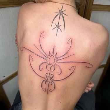 Nutty réalise des tatouages figuratifs et ornementaux, mêlant fantaisie et délicatesse.