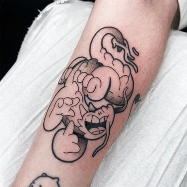 ODSK tatoue des personnages inspirés des cartoons des années 30, entre malice et modernité.